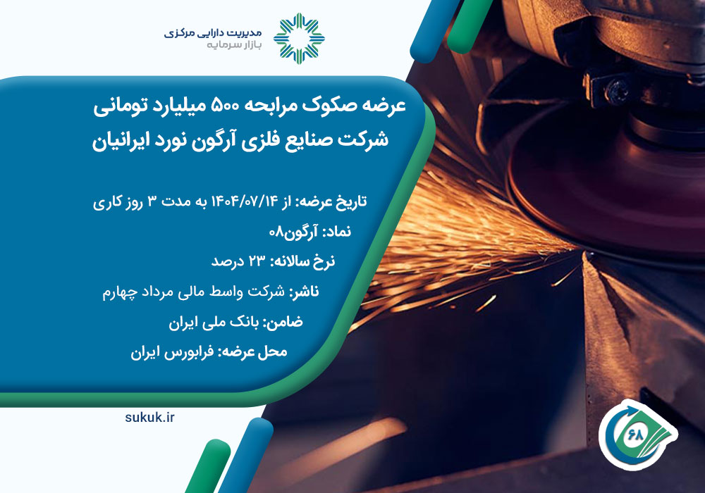 عرضه صکوک مرابحه 500 میلیارد تومانی شرکت صنایع فلزی آرگون نورد ایرانیان