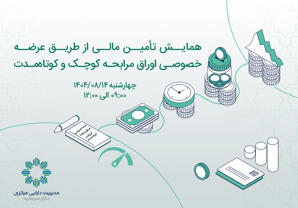شرکت مدیریت دارایی مرکزی بازار سرمایه به عنوان متولی عرضه صکوک در بازار سرمایه، همایش تامین مالی از طریق عرضه خصوصی اوراق مرابحه کوچک و کوتاه مدت را با همکاری مرکز مالی ایران و رسمیو در روز چهارشنبه مورخ 14/08/1404 از ساعت 09:00 الی 12:00 به صورت حضوری و برخط برگزار می‌کند.