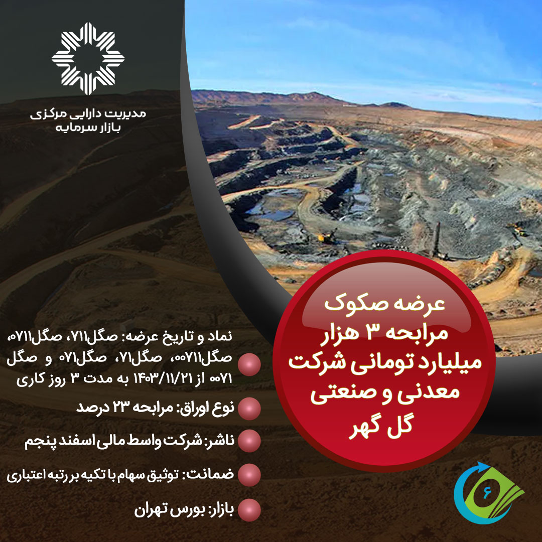 عرضه صکوک مرابحه 3 هزار میلیارد تومانی شرکت معدنی و صنعتی گل گهر