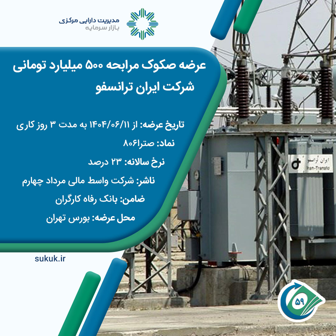 عرضه صکوک مرابحه 500 میلیارد تومانی شرکت ایران ترانسفو