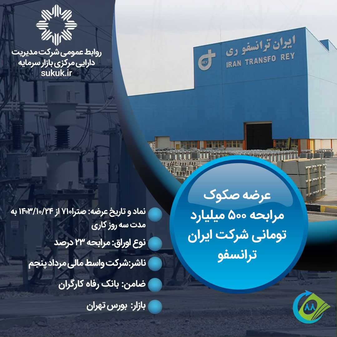 عرضه صکوک مرابحه 500 میلیارد تومانی شرکت ایران ترانسفو