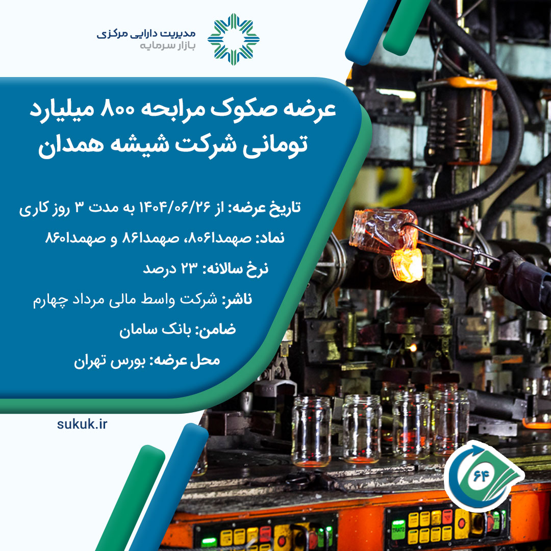عرضه صکوک مرابحه 800 میلیارد تومانی شرکت شیشه همدان