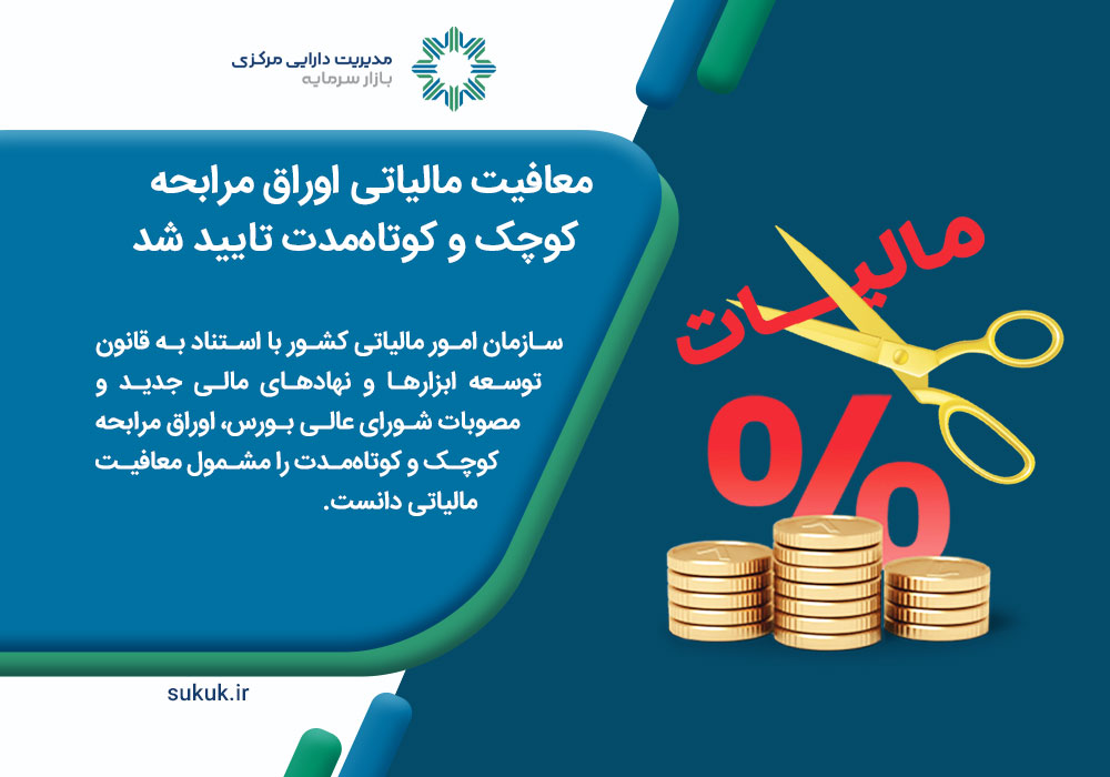 سازمان امور مالیاتی کشور با استناد به قانون توسعه ابزارها و نهادهای مالی جدید و مصوبات شورای عالی بورس، اوراق مرابحه کوچک و کوتاهمدت را مشمول معافیت مالیاتی دانست.