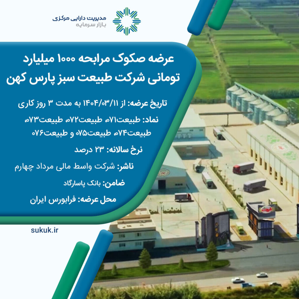 عرضه صکوک مرابحه 1000 میلیارد تومانی شرکت طبیعت سبز پارس کهن